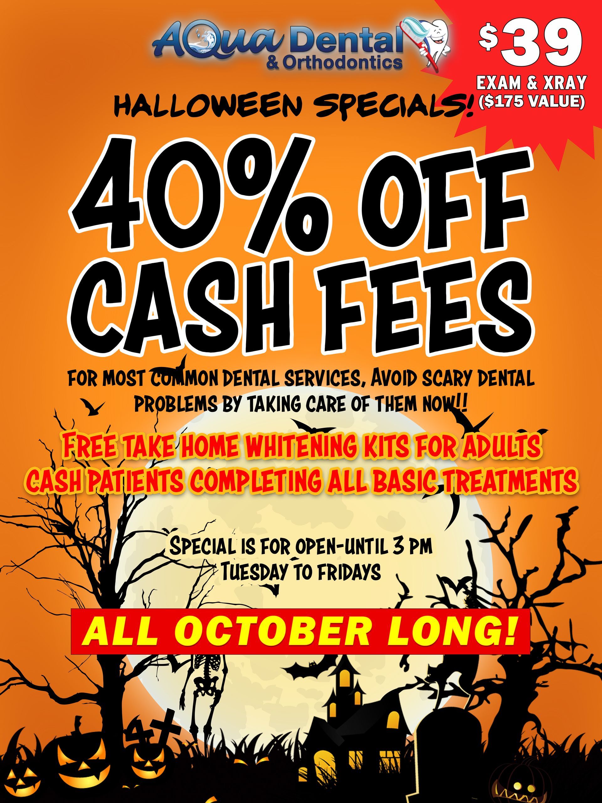 Throughout September, Aqua Dental & Orthodontics is providing an incredible promotion for cash patients—a 60% discount on cash fees for most common dental services. This deal is an excellent opportunity for those without insurance or anyone looking to maintain their oral health at a reduced cost. Moreover, adults who complete all basic treatments will receive free take-home whitening kits , ensuring that every smile we treat remains brilliantly bright.